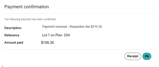 The requisition may include requisition fees and/or additional fees which were insufficient at lodgement. To pay these fees online by credit card: